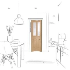 Malton Bi-Fold Internal Oak Door With Clear Bevelled Glass -1936 X 379.5 X 35mm (30″)