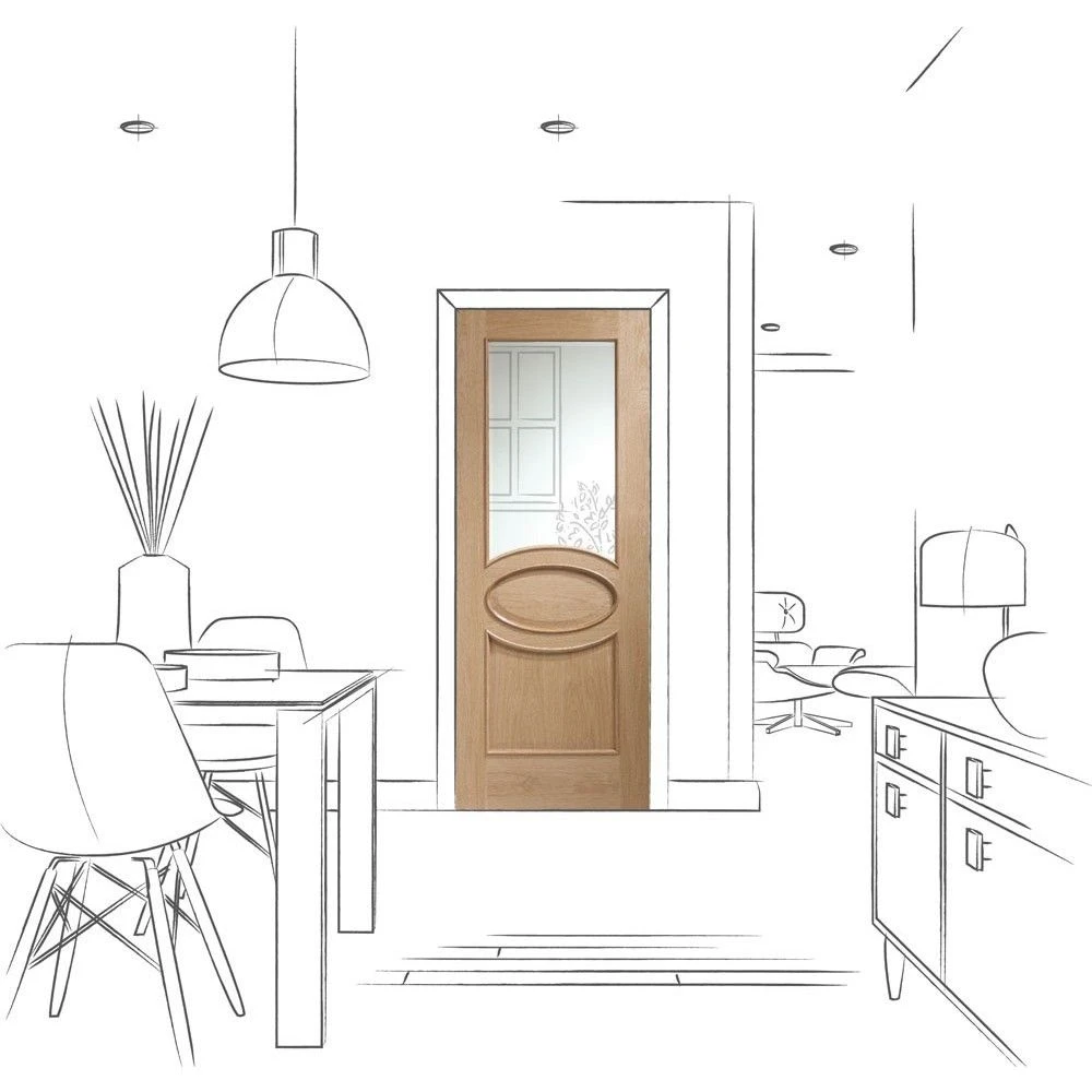The Calabria Internal Glazed Oak Door is a timeless style with genuine oak raised mouldings with a curved central panel design. Using Clear Bevelled glass is an excellent way to add a touch if elegance to the home and using genuine oak features like the lipping and raised mouldings provides even stronger colour consistency.