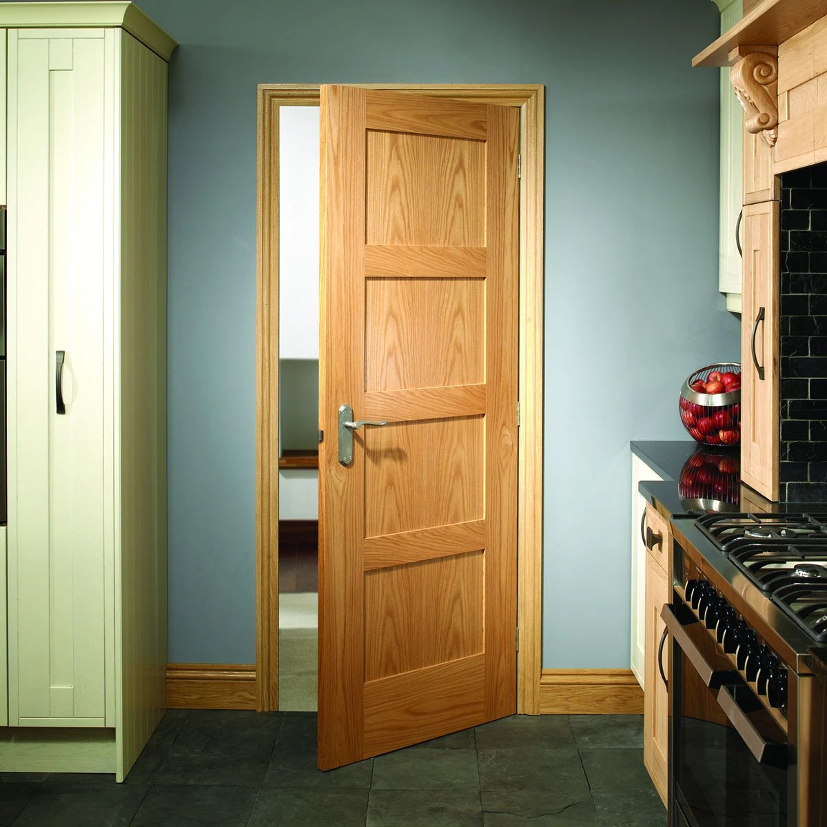 The Shaker oak door is a half hour rated fire door. A versatile option that forms part of the Metropolitan Collection, this door would suit any property be it contemporary or more traditional. This broad range also features panelled and glazed versions as well as fire doors and space saving bi-fold doors.