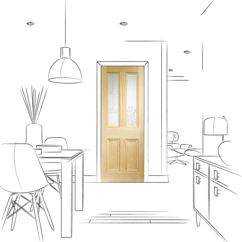 The Edwardian range of internal doors from XL Joinery features intricate mouldings surrounding traditional panels.. This bevelled glazed pine door is delivered unfinished. The Victorian style of this door makes it an excellent choice for traditional interiors.