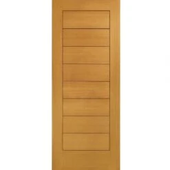 This contemporary and modern external oak door in the lucca style is of engineered construction for greater strength and stability. It features 5 large aperture light panels, ideal as a premium stand out feature for the front or back door of your home.