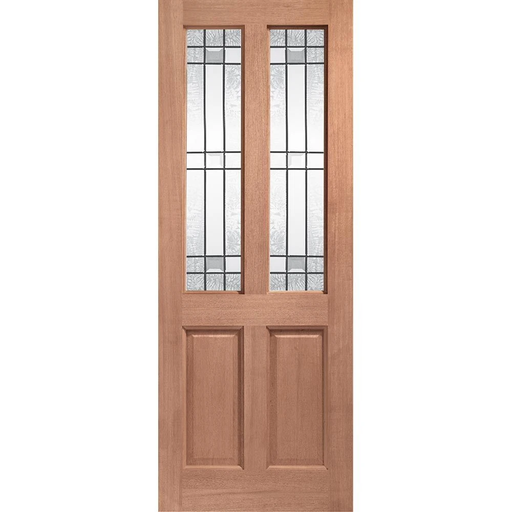 The classic twin light design on the Malton Drydon hardwood exterior door allows light to flow through a home. The glass design features bevelled and glue chip glass with black caming, making this a door that is truly eye catching. A flexible option that would complement any home.
