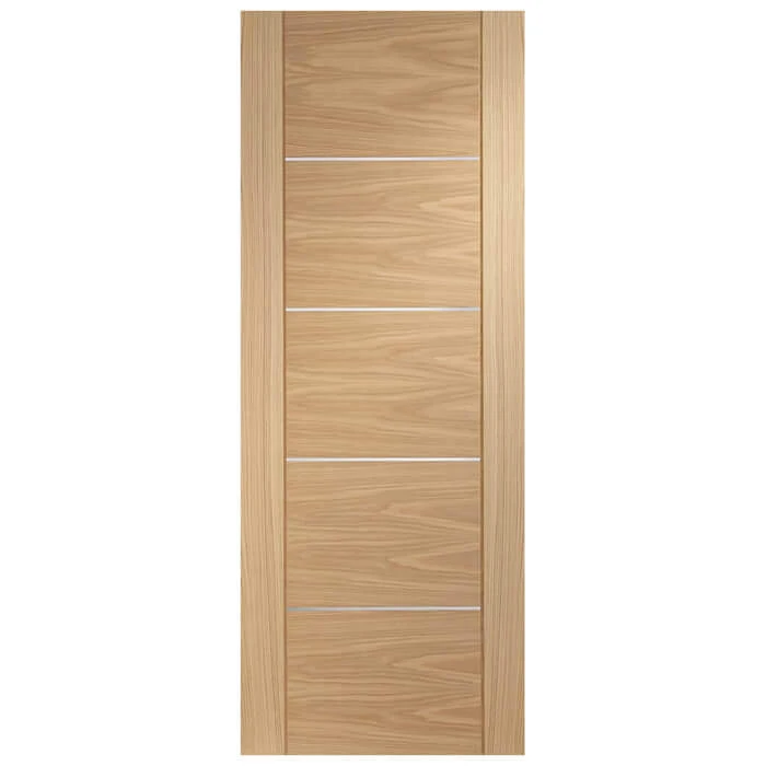 XL Joinery Portici Pre-Finished Internal Oak Door will offer strength, stability and functionality. This fully finished door has a consistent look whilst eliminating the time and hassle required to finish a door. This door is made using top quality A-Grade American white oak veneer with real aluminium inlays. The door has a solid core and can be hung with three hinges.