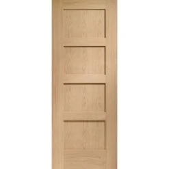 The Shaker collection of doors from XL Joinery is a classic design with four recessed panels and square edges. This oak door is delivered fully finished. The Shaker style of this door makes it an extremely versatile option.