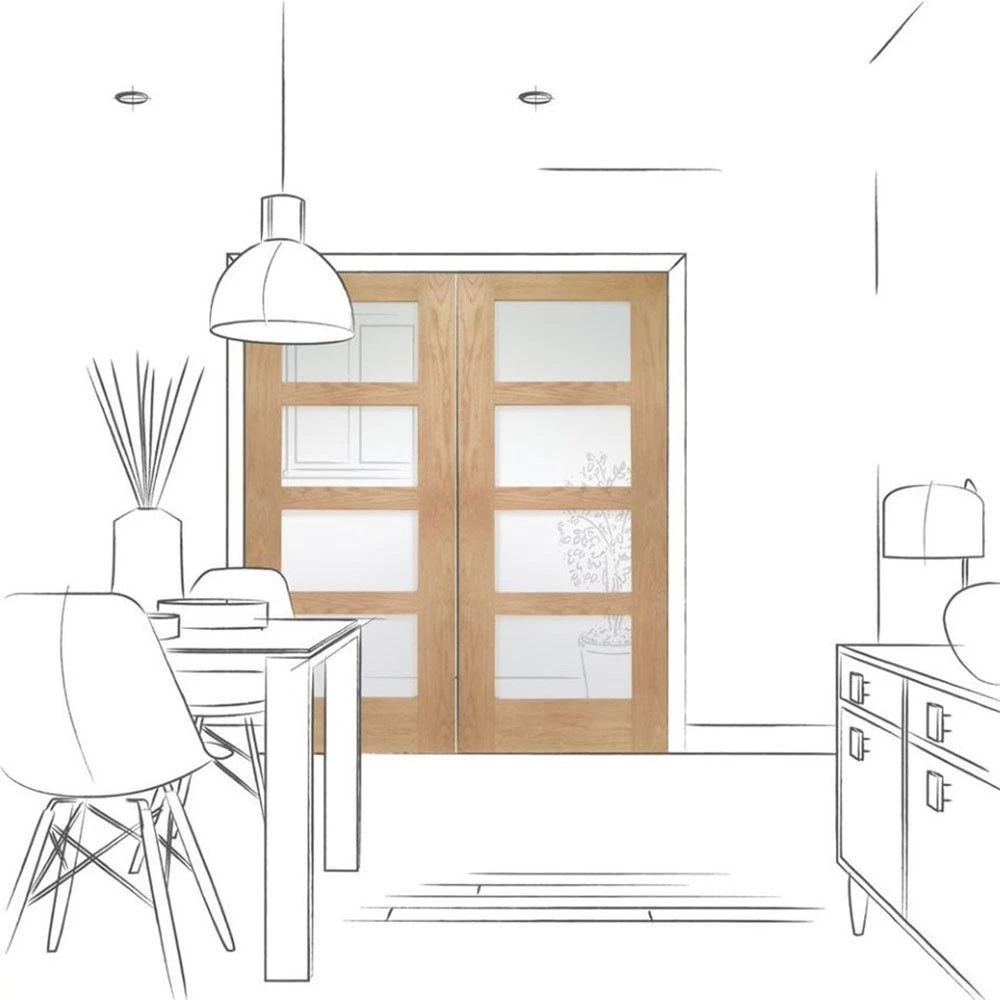 What’s better than one fabulously understated Shaker-style glazed door? Two Shaker glazed doors put together to form a sleek, minimalist room divider! This contemporary pairing is rebated, meaning it’s made up of two single doors with their outer lip removed. This lets them interlock neatly, with no gap in between to spoil the sleek look (or let in a chill). A great solution for dividing an open plan living space, eight glass panels ensure both zones remain light and airy.
