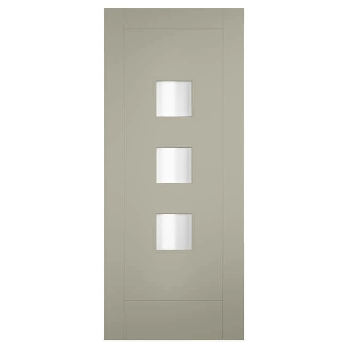 The Tricoya Turin Painted Pebble Grey 3L External Obscure Glazed Door will add visual appeal in your modern home. Made using top quality engineered materials, this door boasts a sturdy construction and features decorative part double glazed panes that allow plentiful light. This exterior door comes with a 30-year manufacturer’s defect guarantee. With a hard-wearing and weather-resistant outer face, this door can be trimmed up to 12mm from each edge and is EUTR Compliant (non-FSC).