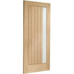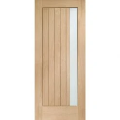 The Trieste Oak door by XL Joinery is a stylish contemporary boarded door with a vertical obscure glazed panel. This door complements our oak Suffolk boarded external door perfectly and can be used to create a matching look throughout any property.