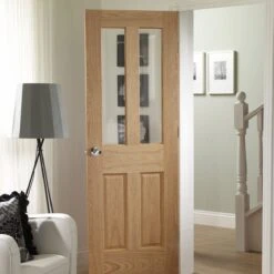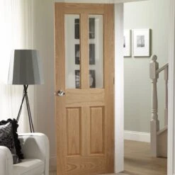 Malton Bi-Fold Internal Oak Door With Clear Bevelled Glass -1936 X 379.5 X 35mm (30″)